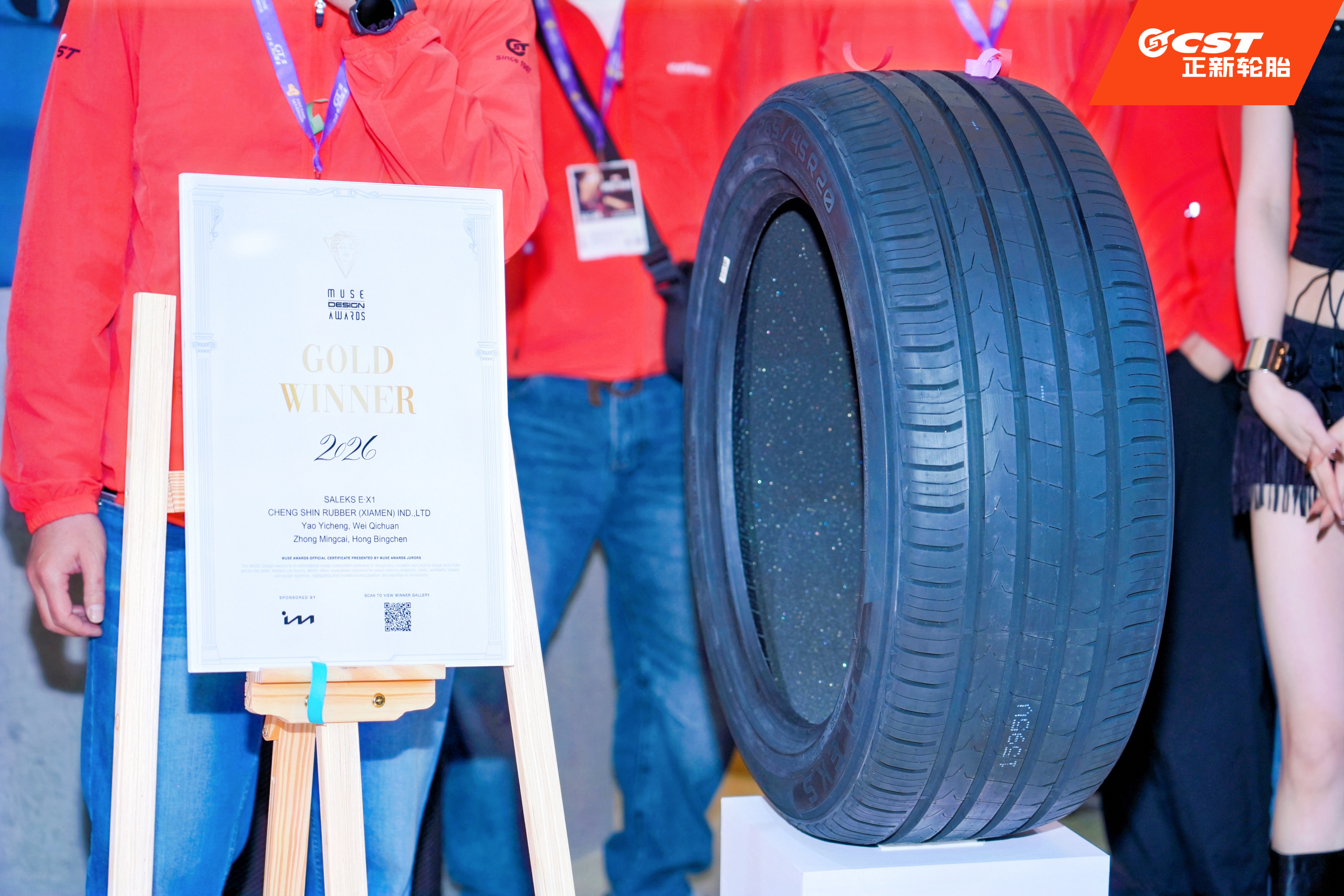 此外,展会现场还特别举行荣誉揭幕仪式,庆贺正新黑钻EX1新能源轮胎斩获美国MUSE设计奖,以国际认可的产品创新设计实力,惊艳全场汽车文化爱好者,更吸引韩国新晋女团前来为正新轮胎加油助阵。